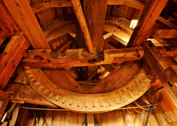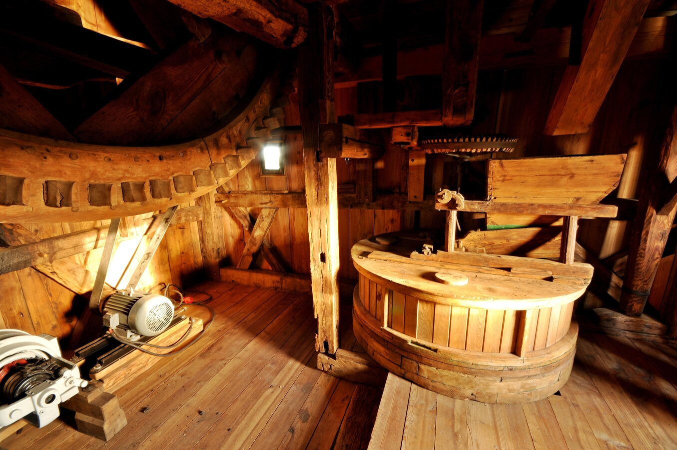 - Wyposażenie: zachowane elementy mechanizmu: koło paleczne, sztąber, mącznica – wszystko pokazuje proces przemiału zboża dawniej.