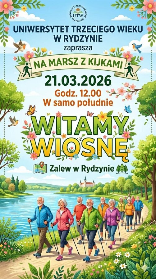 Uniwersytet Trzeciego Wieku w Rydzynie zaprasza mieszkańców do udziału w wyjątkowym wydarzeniu – Marszu z Kijkami, który odbędzie się już 21 marca 2026 roku o godzinie 12:00.
