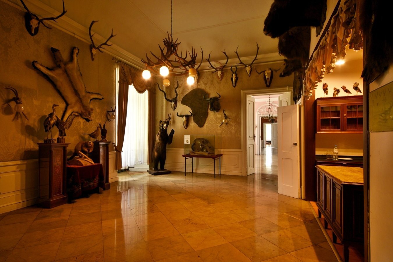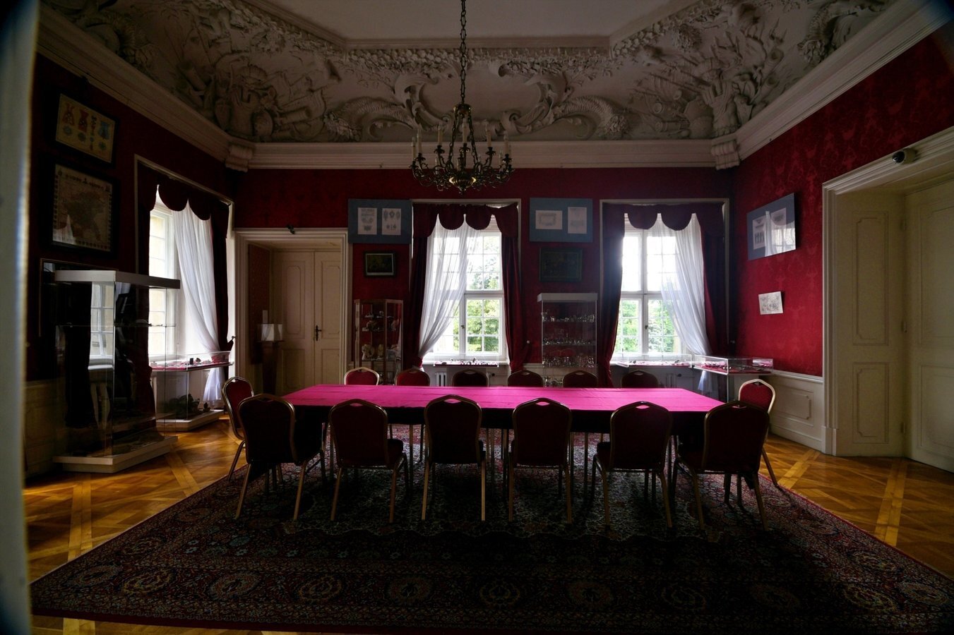 - Wnętrza (częściowo zachowane i zrekonstruowane) oddają ducha epoki baroku i klasycyzmu – znajdziemy tu sztukaterie, marmurowe kominki, zdobione sufity i portale. Warto zwrócić uwagę na: