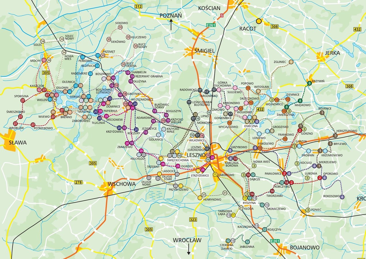 18.Szlak Powiatowy Kolor trasy: czerwony Długość: 24,5 km Przebieg: Leszno – Wilkowice – Krzycko Wielkie – Włoszakowice – Grotniki – Boszkowo