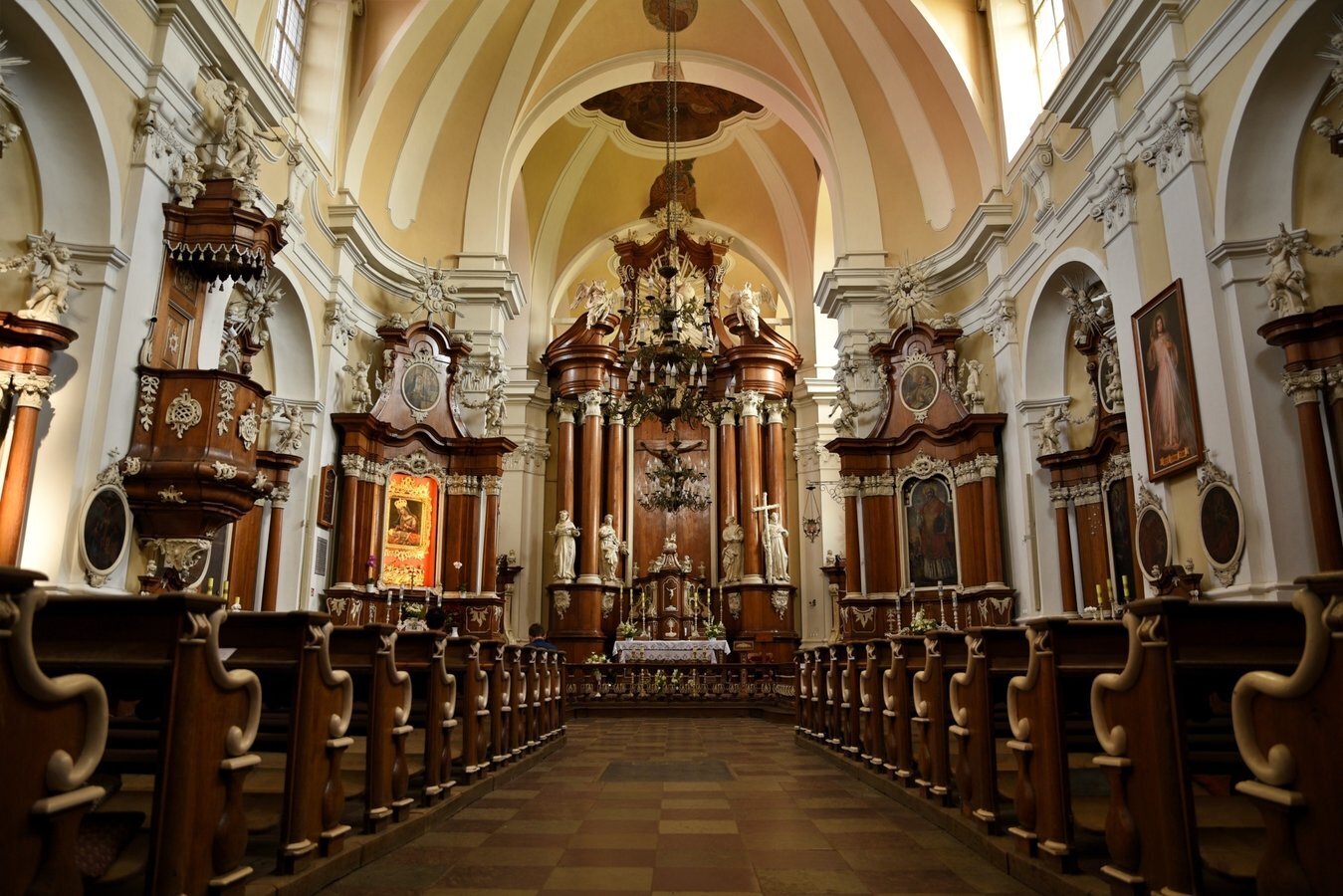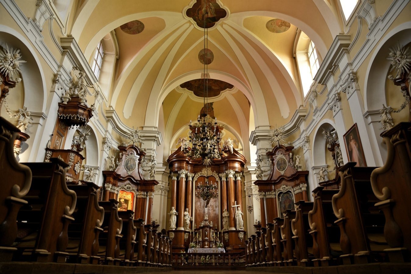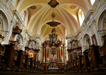 - Architektura barokowa, wnętrza z XVIII w., detale sakralne: ołtarze, rzeźby, stalle, organy — przykład piękna sztuki kościelnej.
