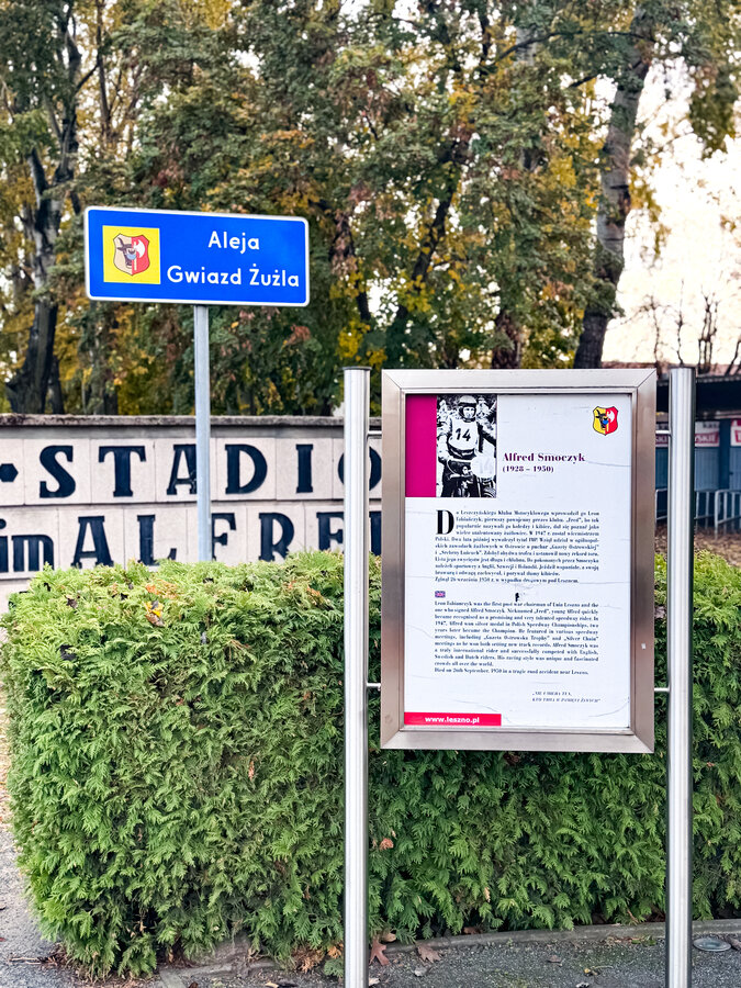 - Stadion w Lesznie nosi imię Alfreda Smoczyka — wybitnego żużlowca i symbolu motocyklistów polskich: