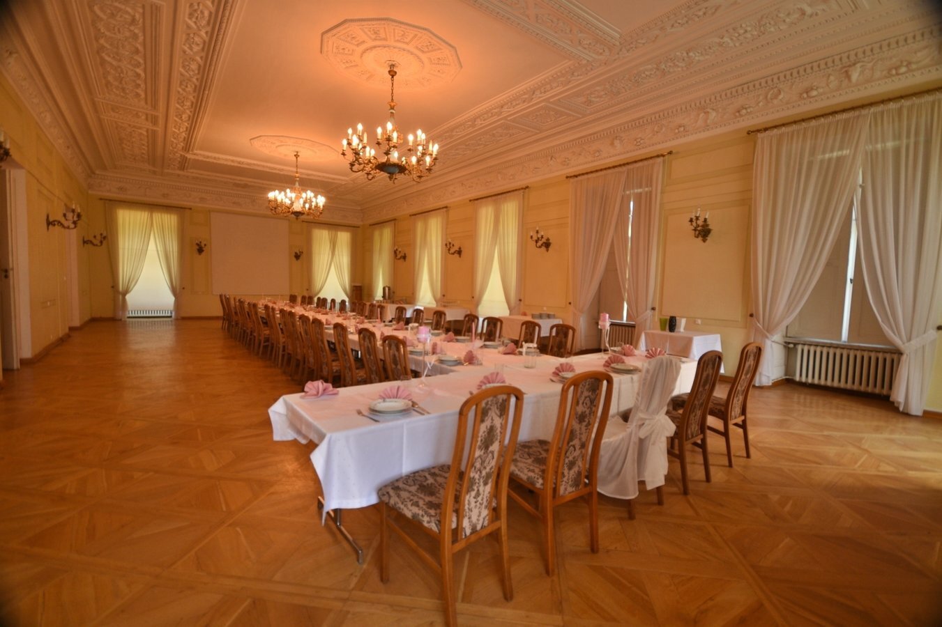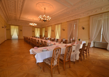 - Zwiedzanie wnętrz (po wcześniejszym umówieniu) — sale reprezentacyjne, wystrój, dekoracje.