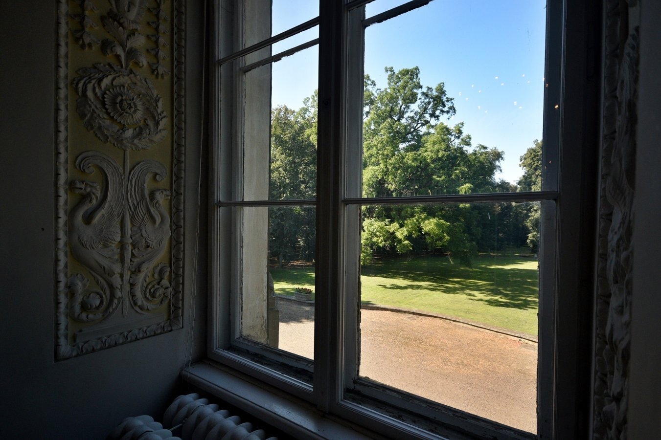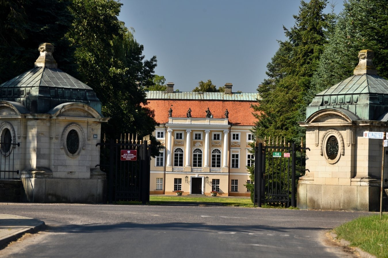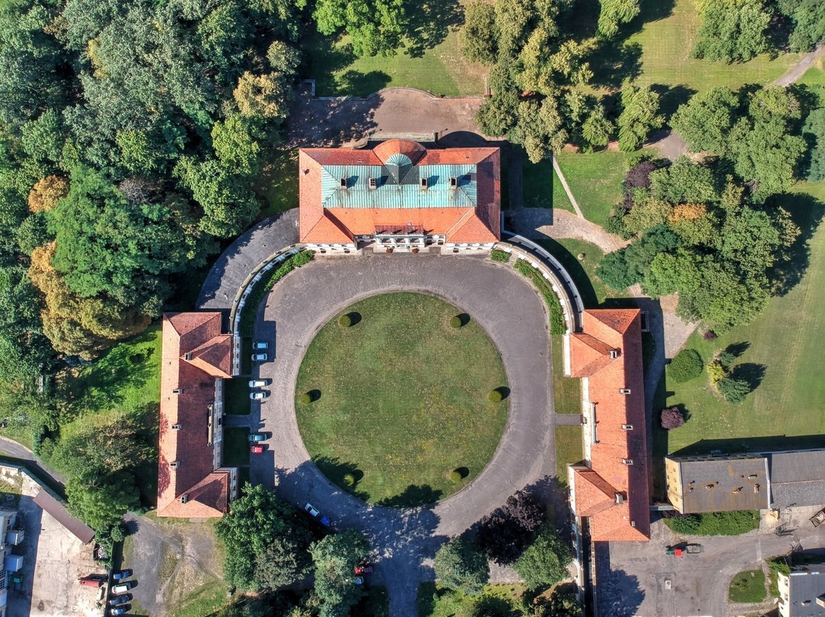 - Spacer po parku z drzewostanem i stawami; fotografowanie rezydencji z zewnątrz.