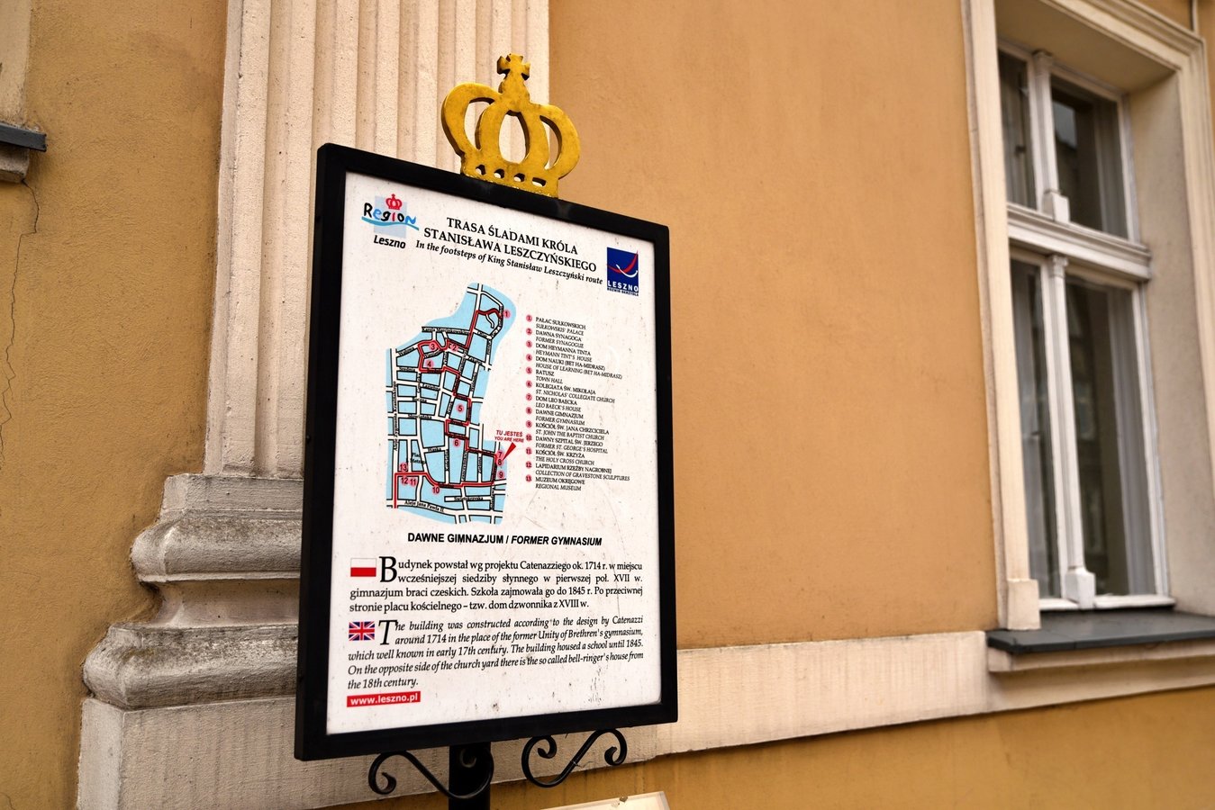 Narożny budynek mieszczący przy ul. Chrobrego 32 zbudowany został ok. 1714 r. Jego projektantem był prawdopodobnie Jan Catenazzi, architekt kościoła św. Mikołaja. Do 1845 r. mieściło się tutaj gimnazjum kalwińskie, kontynuujące tradycje gimnazjum braci czeskich J. A. Komeńskiego. W 1821 r. w wyniku połączenia z gimnazjum luterańskim, powstało Królewsko Pruskie Gimnazjum w Lesznie. Gimnazjum w roku 1845 zostało przeniesione do pałacu Sułkowskich, zaś jego dotychczasową siedzibę przeznaczono na cele mieszkalne. W latach 1965-2002 mieściło się tu Archiwum Państwowe, przeniesione następnie na ul. Solskiego 71.