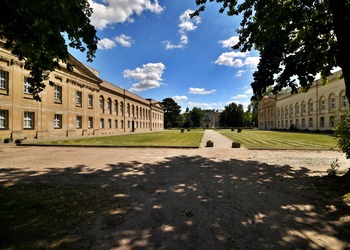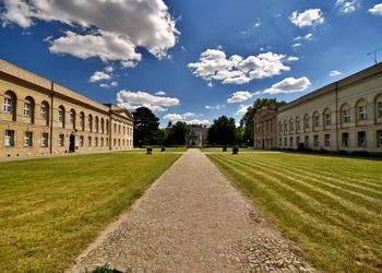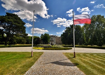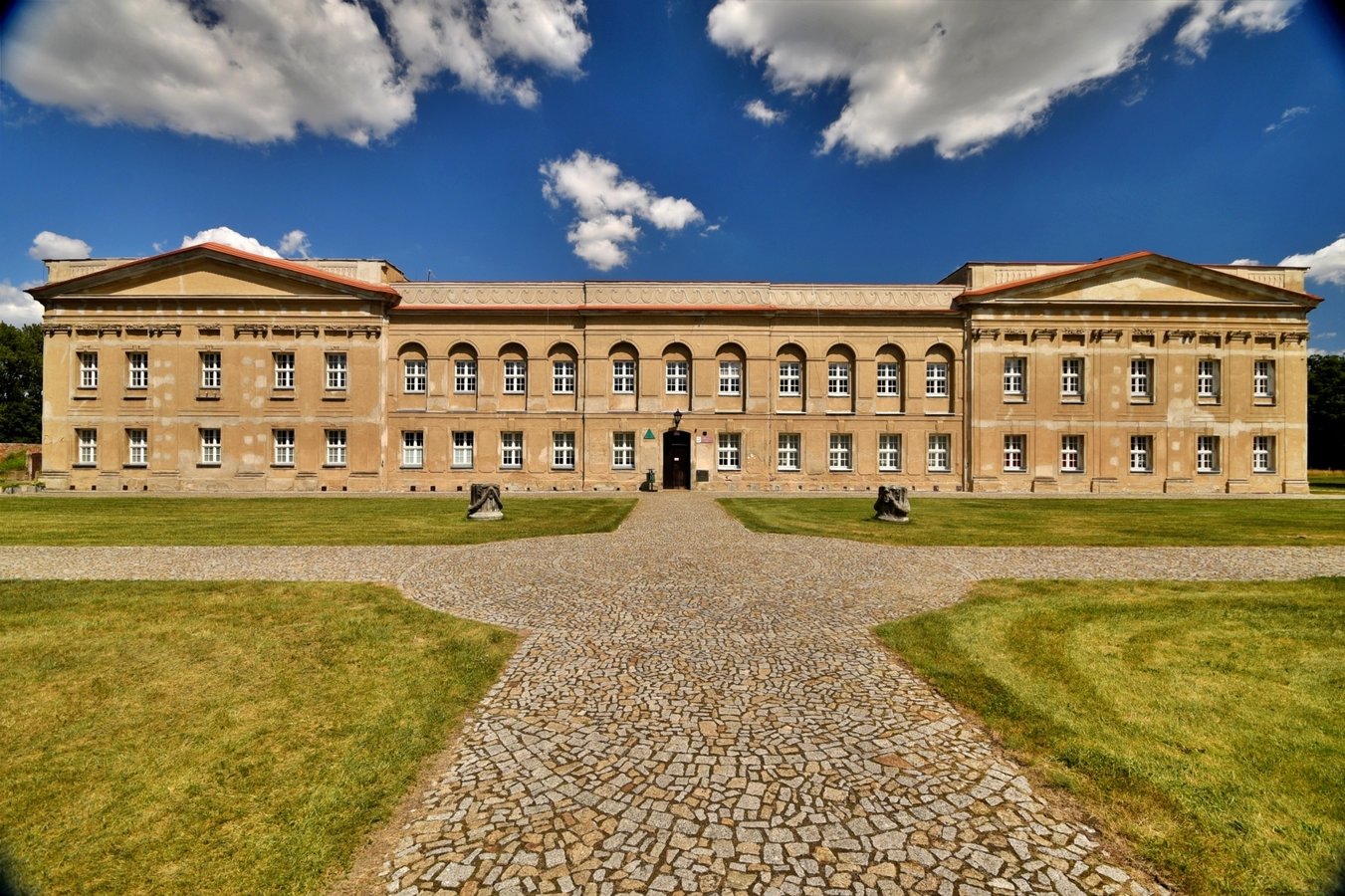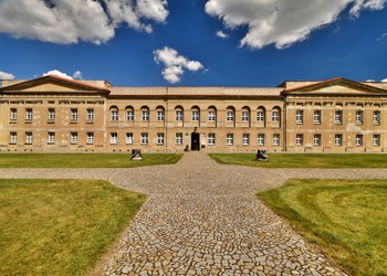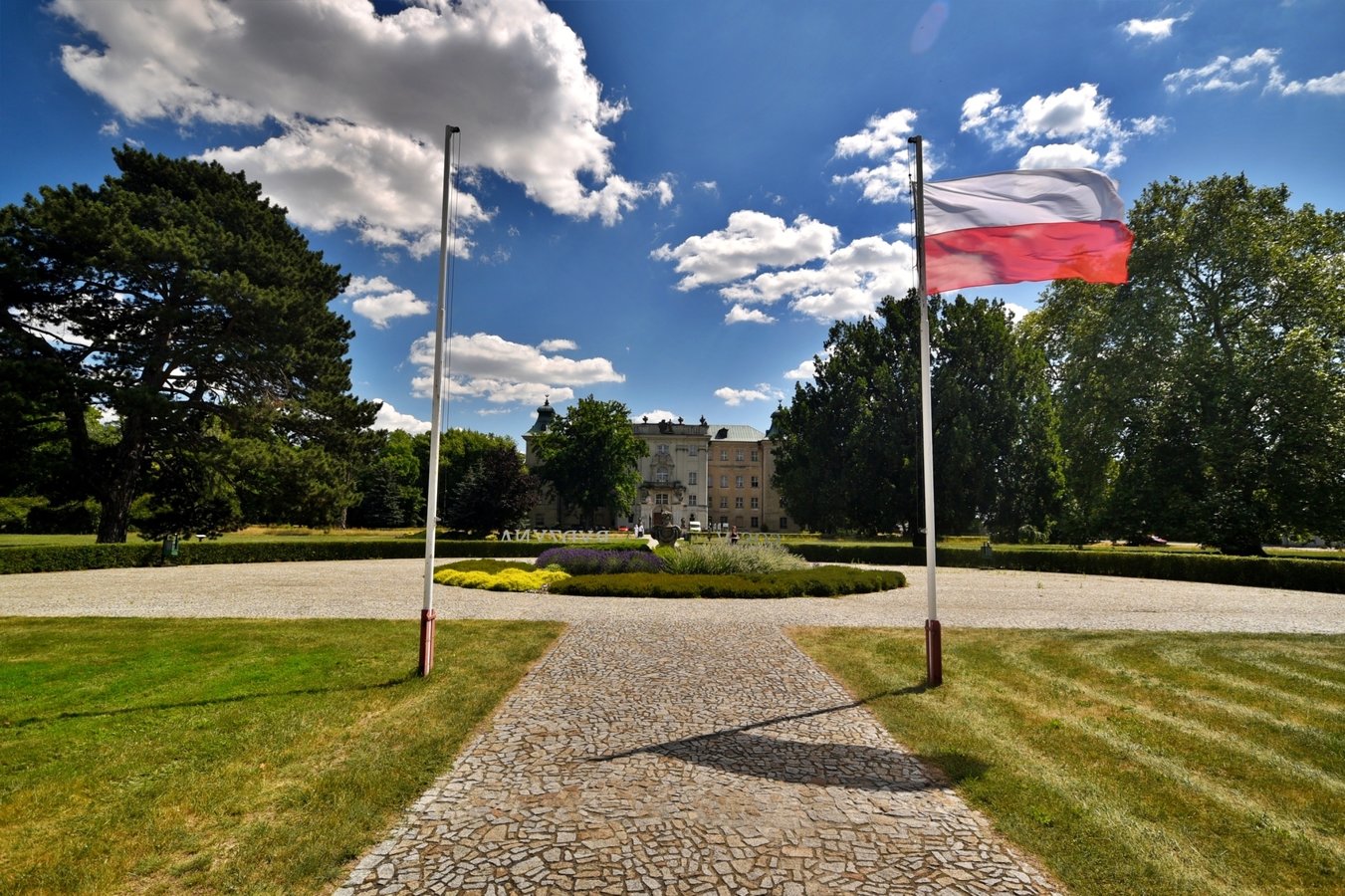 Na dawne oficyny składają się dwa zespoły budynków z drugiej połowy XVIII w. półkoliście zamykające dawny dziedziniec honorowy. Położone symetrycznie po obu stronach dawnego dojazdu do zamku od strony Leszna. Pierwotnie mieściły się tutaj m.in. ujeżdżalnia, stajnie i wozownie oraz obszerna sala redutowa. Obecnie znajduje się tutaj siedziba Specjalnego Ośrodka Szkolno Wychowawczego dla dzieci specjalnej troski, prowadzącego m.in. klasy dla głuchoniemych i warsztaty terapii zajęciowej.