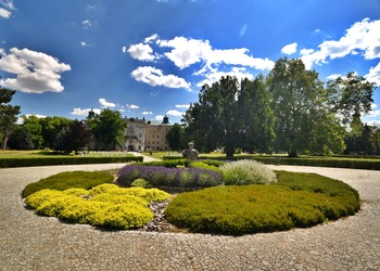 Przed oficynami znajdują się pomnikowe okazy platana klonolistnego i czarnej sosny. W kierunku wschodnim od oficyn zachowały się relikty Pomarańczarni (mieścił się tam znany teatr dworski Sułkowskich) oraz rzadko spotykany w zespołach pałacowych pawilon strzelnicy dworskiej z 1773 r. Dzięki staraniom SIMP obecnie mieści letnią kawiarnię. Teren strzelnicy został użyczony rydzyńskiemu Bractwu Kurkowemu.