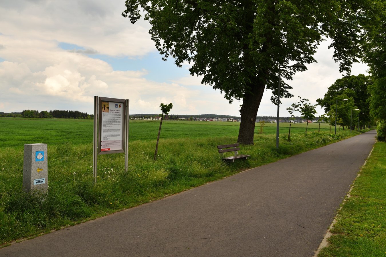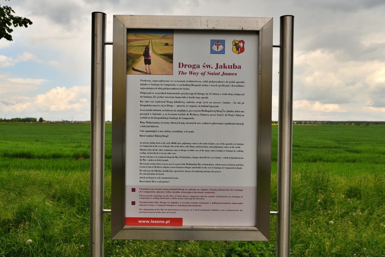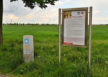 Droga św. Jakuba to szlak pielgrzymkowy zapoczątkowany we wczesnym średniowieczu prowadzący do grobu apostoła Jakuba w Santiago de Compostela w Hiszpanii. Mieszkańcy Leszna zabiegali o to aby alejka za os. Wieniawa nosiła nazwę właśnie drogi św. Jakuba. Radni jednogłośnie tej petycji się przychylili. Inicjatorka nazwania alei w ten sposób, redaktorka Lidka Matuszewska, chciała jednak, aby było to naprawdę wyjątkowe miejsce. Zadbała zatem o to, aby w połowie tej alei stanęła tablica informacyjna i kamienny słupek, jakich mnóstwo na Camino w Hiszpanii. Realizację tego projektu finansowo wsparło Miasto Leszno w ramach inicjatywy lokalnej.