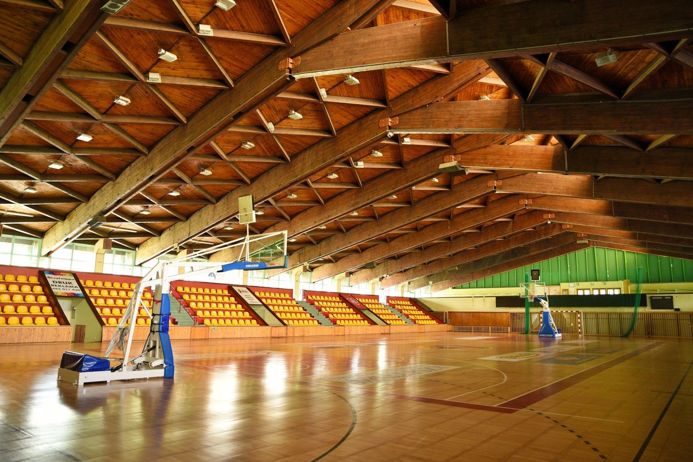 Hala widowiskowo-sportowa "Trapez" wzniesiona została w 1987 r. Projektantem obiektu był Wojciech Zabłocki, znany architekt i szermierz. Rozgrywane są tutaj głównie mecze ligowe w koszykówce oraz futsalu jak również organizowane są imprezy targowe, wystawy i koncerty. Hala wyposażona jest w 640 miejsc siedzących oraz pełnowymiarowe boisko przystosowane do koszykówki, piłki ręcznej, siatkowej oraz futsalu. Ciekawym rozwiązaniem architektonicznym jest umieszczenie poniżej poziomu gruntu parkietu oraz sektorów dla widowni. W rezultacie tego zabiegu z zewnątrz budynek wydaje się niewielką halą, która eksponuje tylko swoją koronę.