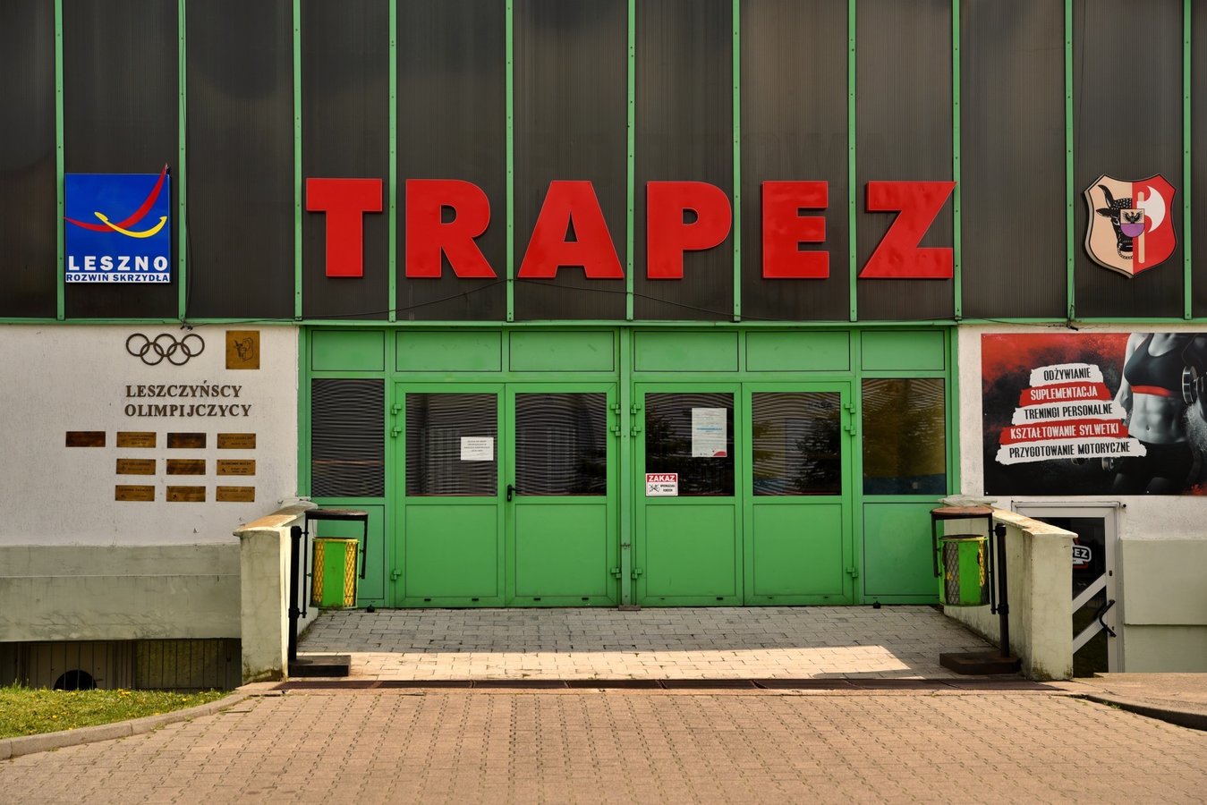Obok głównego wejścia do budynku widnieją pamiątkowe tablice poświęcone leszczyńskim olimpijczykom.