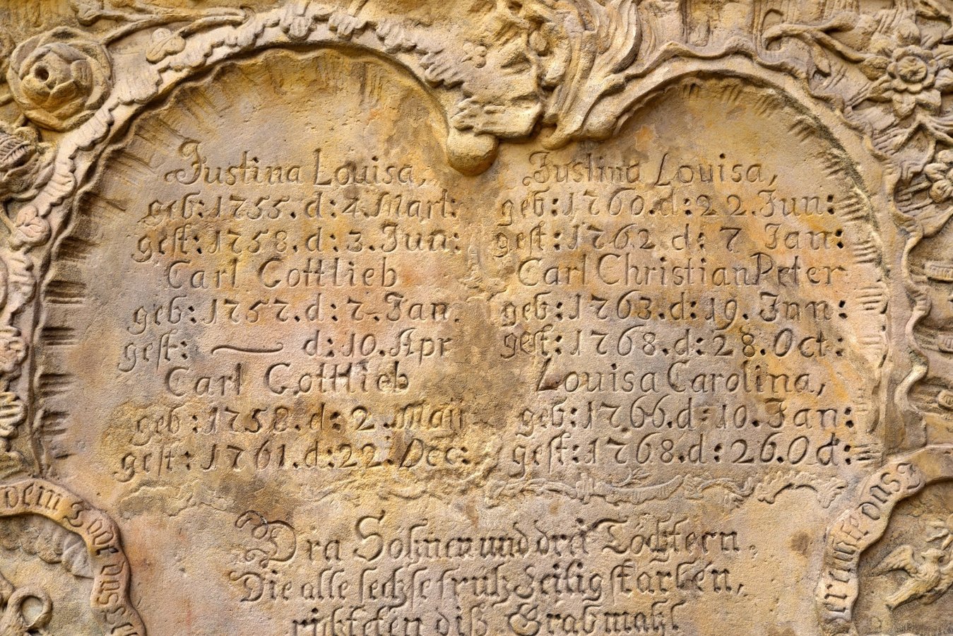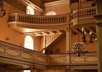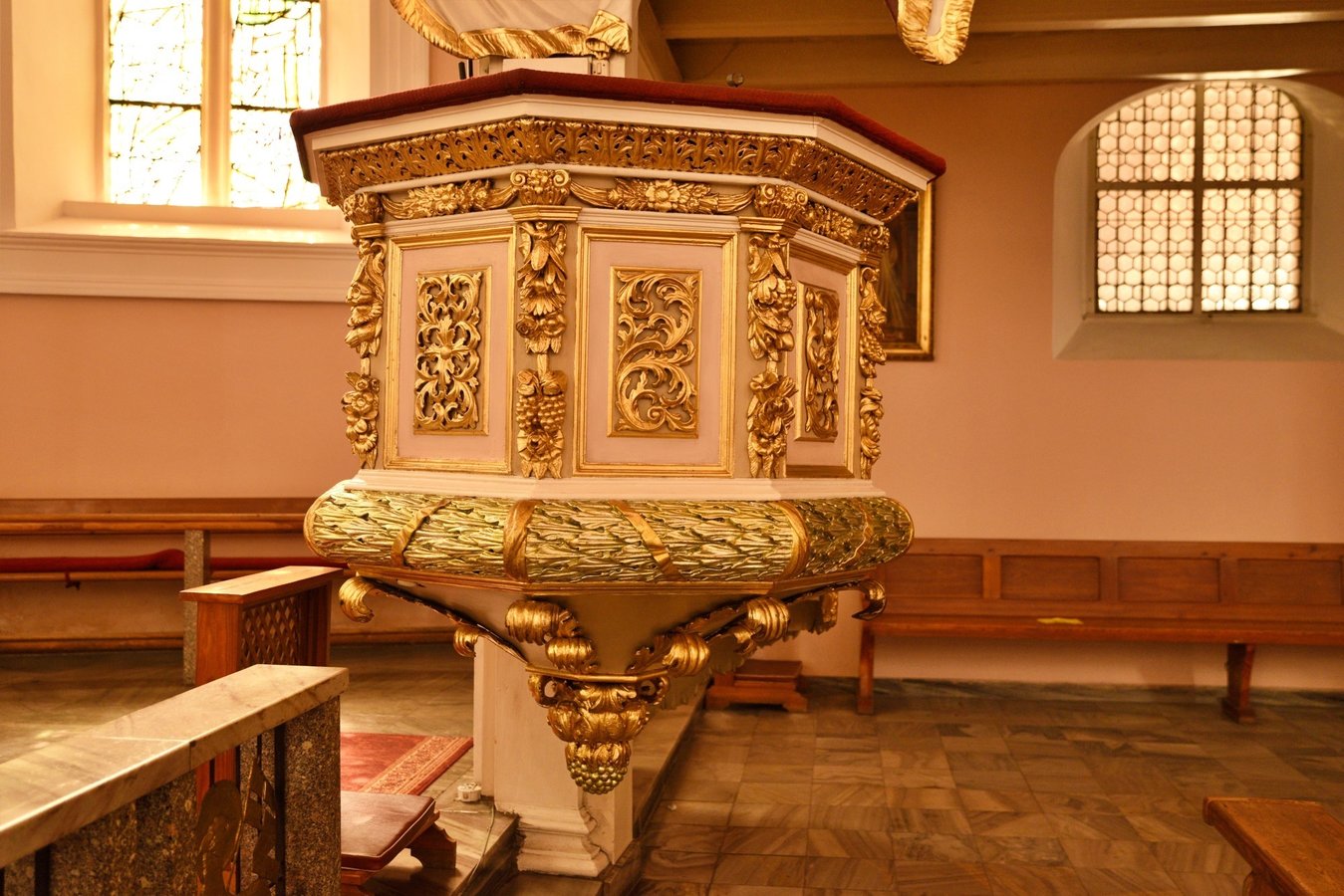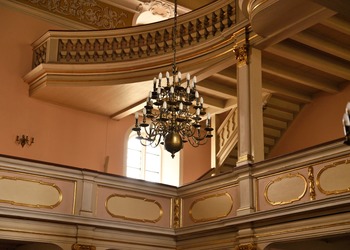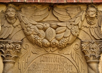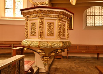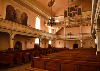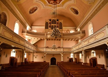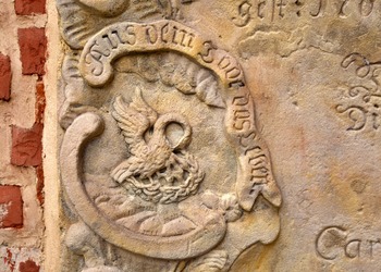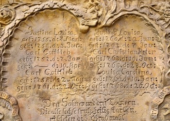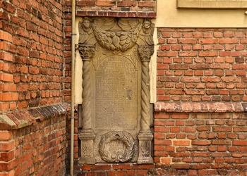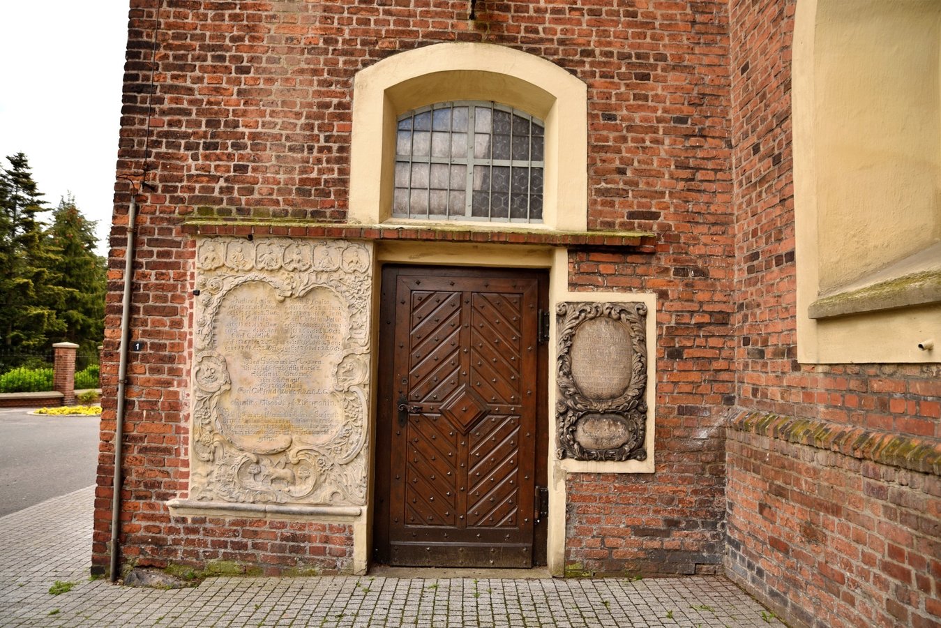 Na przyporze od strony południowej zegar słoneczny z datą roczną 1653. Na północnej ścianie wmurowano XVIII-wieczne epitafia zmarłych dzieci Karola Gotfryda Woide, duchownego Jednoty, późniejszego pastora w Londynie i asystenta bibliotekarza w British Museum.