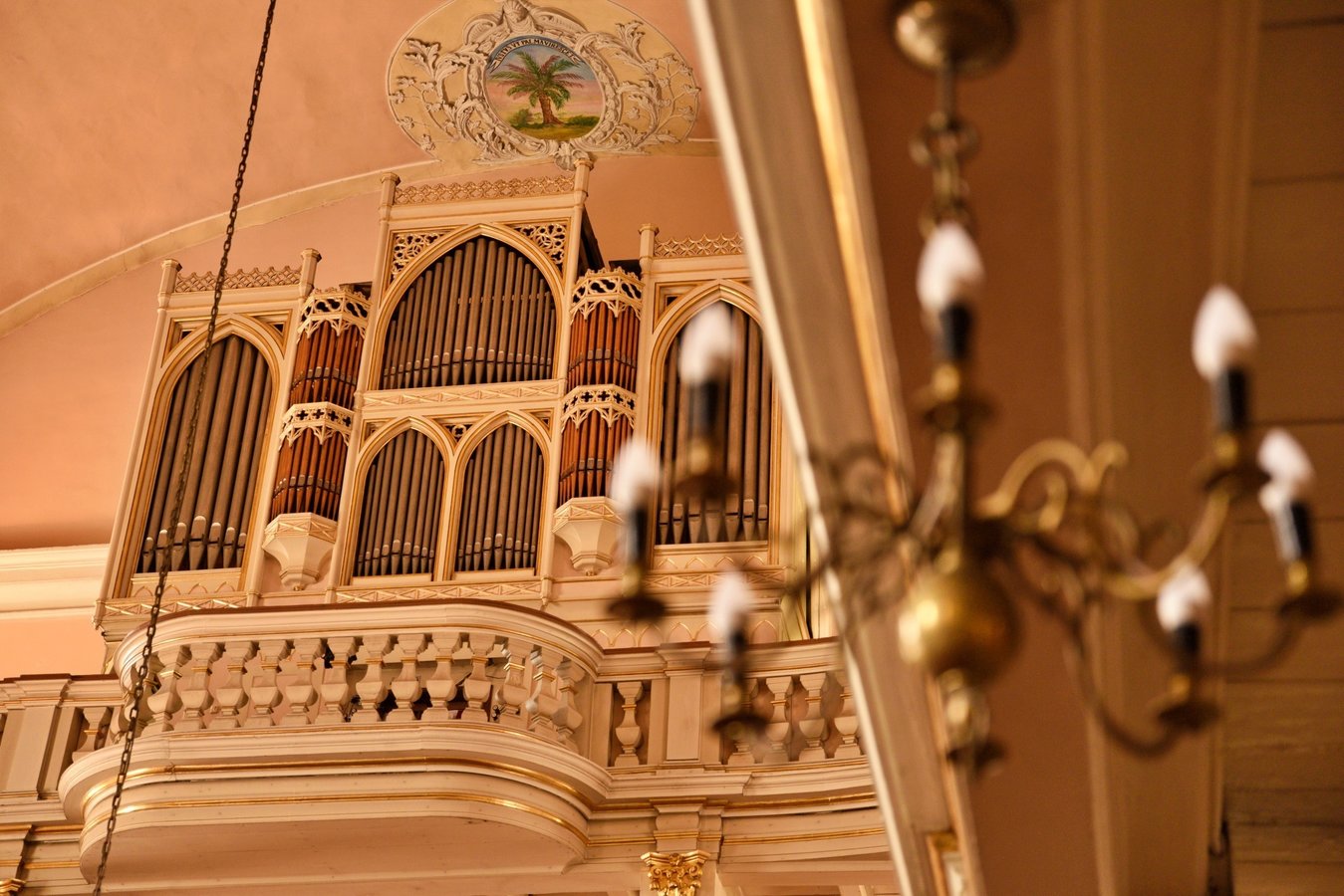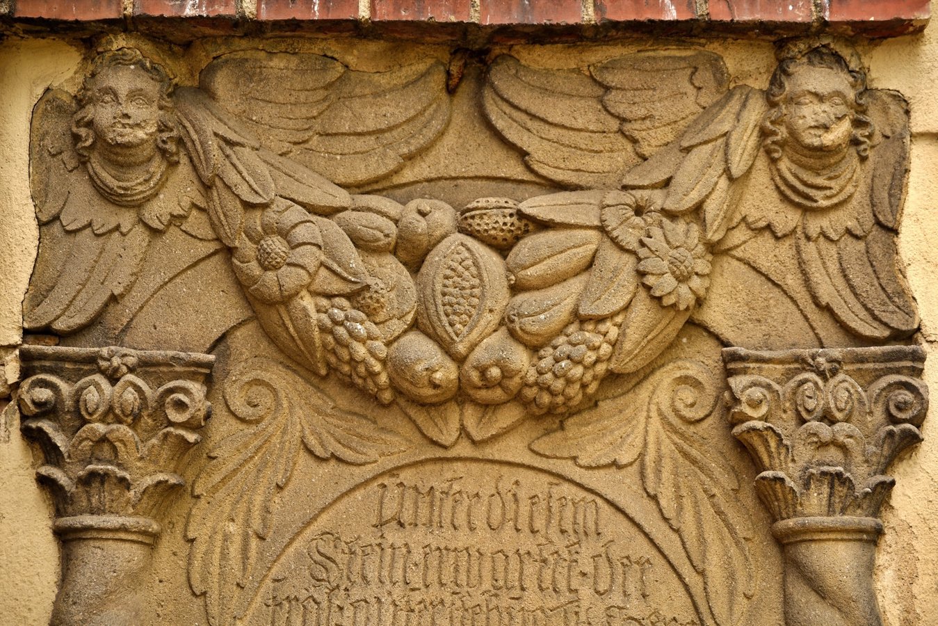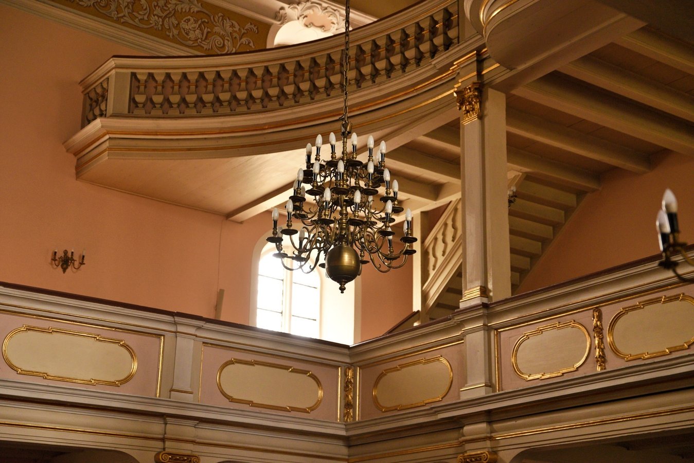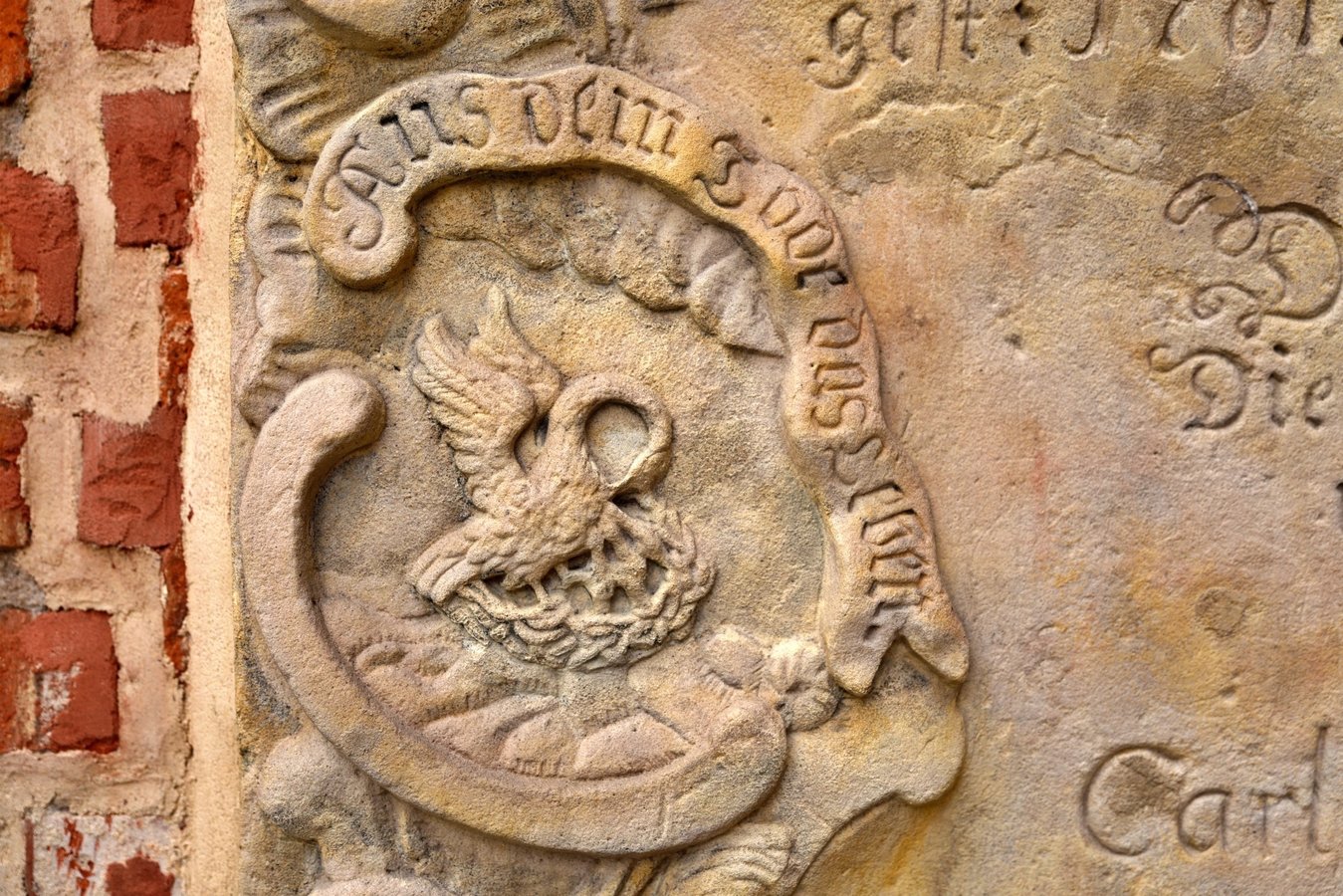 Na przyporze od strony południowej zegar słoneczny z datą roczną 1653. Na północnej ścianie wmurowano XVIII-wieczne epitafia zmarłych dzieci Karola Gotfryda Woide, duchownego Jednoty, późniejszego pastora w Londynie i asystenta bibliotekarza w British Museum.