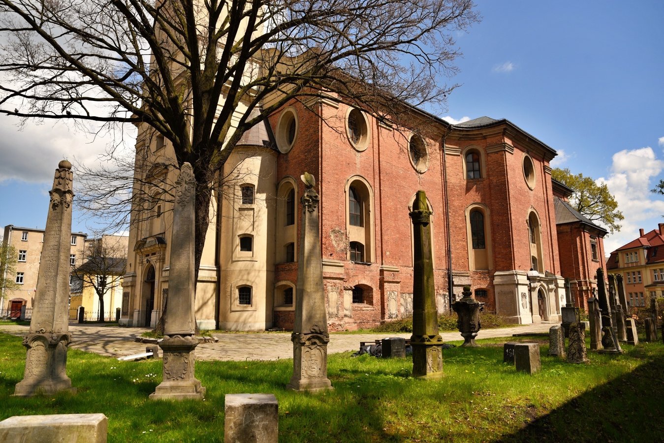 Czwarta w tym miejscu świątynia wybudowana przez społeczność luterańską w Lesznie. Pierwszy kościół, drewniany, wzniesiono w 1635 r. Obecna budowla z przełomu XVIII/XIX w. jest dziełem Pompeo Ferrariego, z wieżą z pocz. XX w. dobudowaną wg. XVIII-wiecznego projektu M. Frantza. W początkach XVIII w. zbór uchodził za najpiękniejszy przykład luterańskiego budownictwa sakralnego w Wielkopolsce i stanowił wzór dla podobnych realizacji m.in. w Poznaniu i Rawiczu.