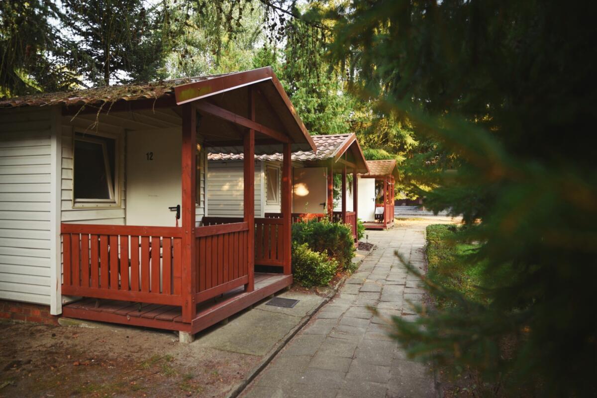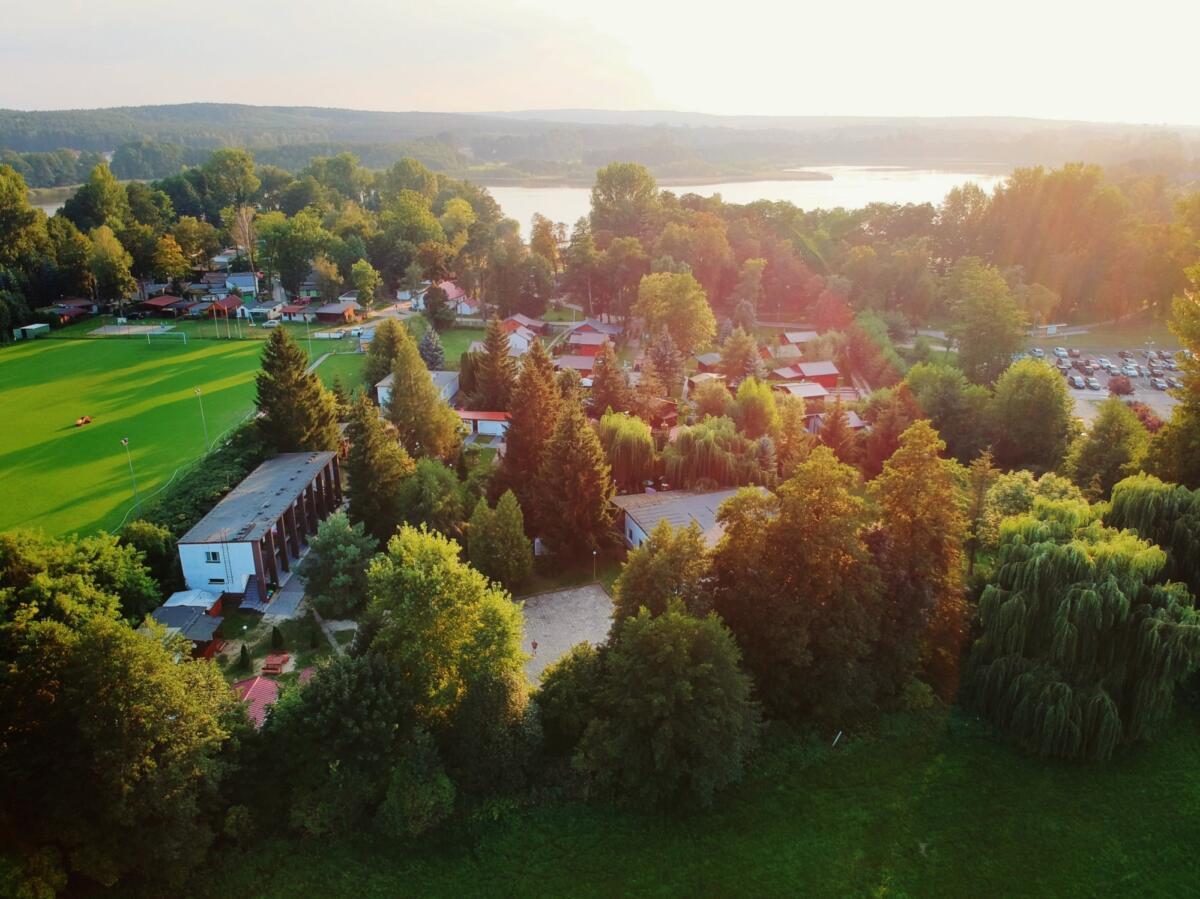 Oferuje 90 miejsc noclegowych w pokojach wieloosobowych i domkach kempingowych z pełnym węzłem sanitarnym. Ośrodek jest ogrodzony i posiada własny, strzeżony parking samochodowy. Całodzienne wyżywienie przygotowywane jest w stołówce na terenie obiektu (możliwość dostosowania diety). Oferujemy bezpłatny dostęp do WiFi w pokojach i domkach.