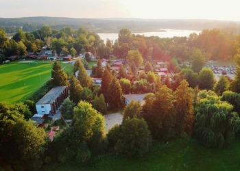 Istnieje również możliwość korzystania z boiska do piłki nożnej, piłki siatkowej, piłki koszykowej, sali gimnastycznej oraz sprzętu wodnego (kajaki, rowerki, łódki).