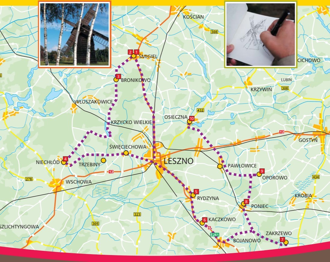 Z Leszna wyruszamy na północ drogą nr 5 do Śmigla.