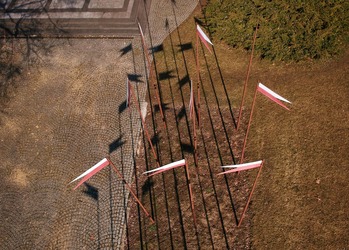 Symbolikę pomnika, dzieła Jerzego Schmidta i Józefa Petruka, dopełniają dwa szpalery stylizowanych lanc ułańskich.