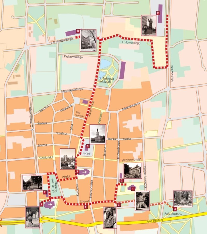 - Okolice dawnej, dziś nie istniejącej Bramy Rydzyńskiej – miejsce domu zakupionego przez J.A. Komeńskiego
