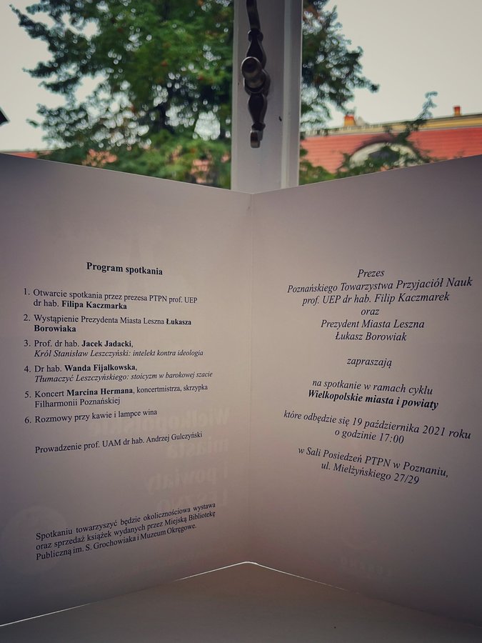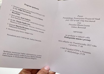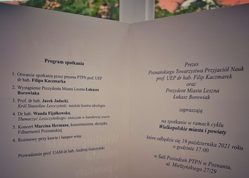 We wtorek 19 października, w siedzibie Polskiego Towarzystwa Przyjaciół Nauk w Poznaniu, odbyło się spotkanie z cyklu Wielkopolskie Miasta i Powiaty. W spotkaniu udział wzięli przedstawiciele świata nauki i regionalistów związanych z Lesznem.