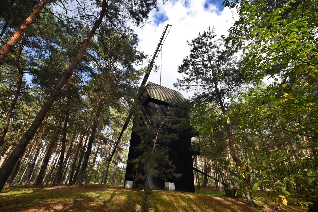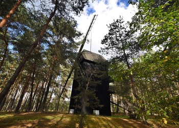 Sto osiemdziesiąt metrów dalej znajduje się drugi, odbudowany wiatrak z 1768 roku.