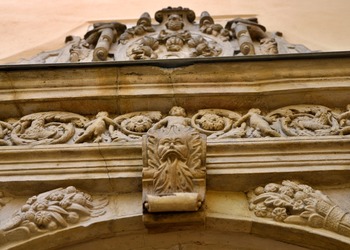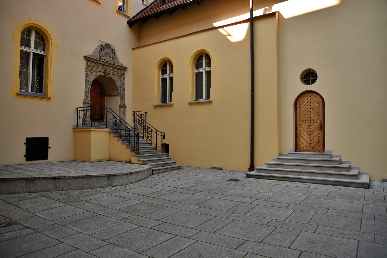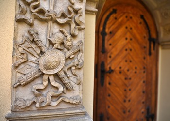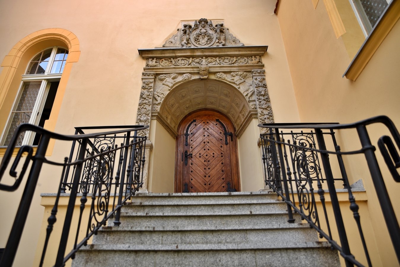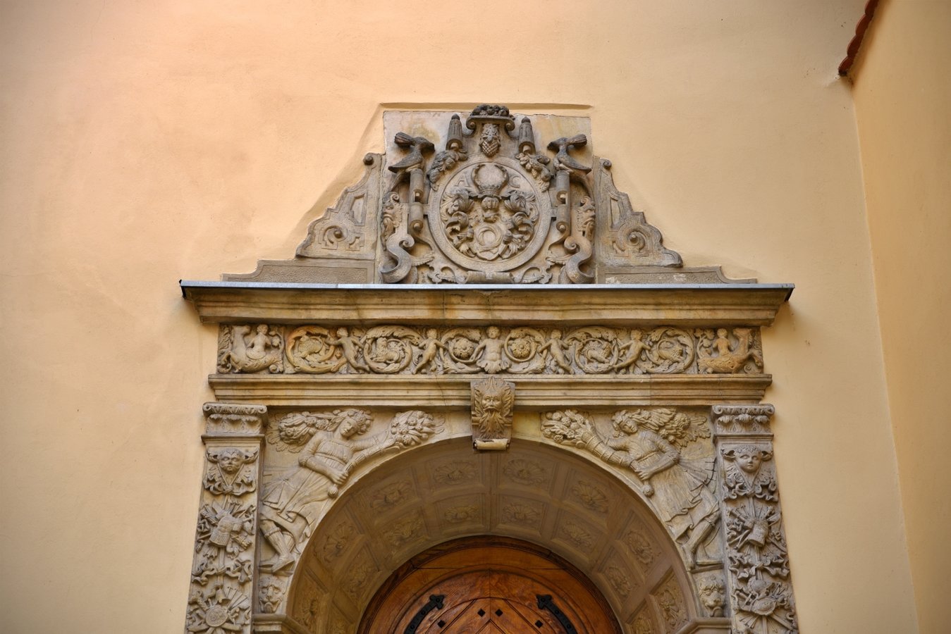 Nad wejściem, w narożu dziedzińca wewnętrznego, zachował się manierystyczny portal z ok. 1600 r. z bogatą dekoracją rzeźbiarską. Jest to jeden z najciekawszych zabytków rzeźby architektonicznej w Wielkopolsce tego czasu.