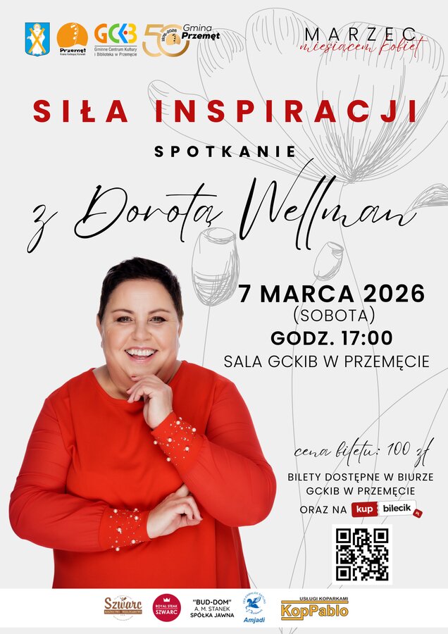 Data/Czas: 07/03/2026 - 17:00 - 19:00 Zapraszamy na spotkanie z Dorotą Wellman w ramach projektu "Marzec miesiącem kobiet"