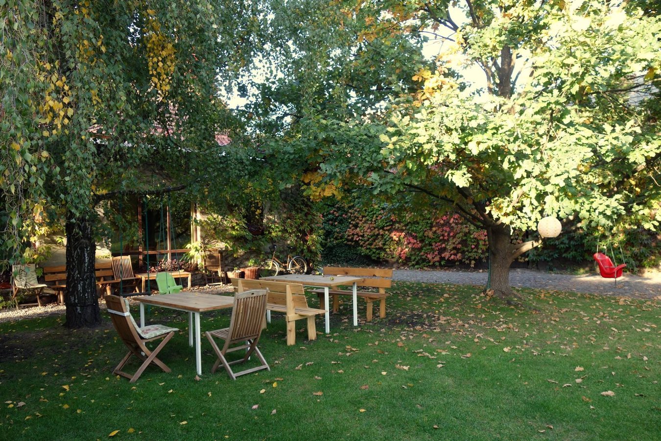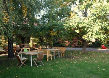 Posiłki można spożywać przy wielkim stole w salonie z widokiem na zazielenione podwórko, bądź też na zewnątrz, w cieniu drzew. Duży trawnik jest doskonałym miejscem do opalania się na słońcu, zabaw piłką czy też gry w badmintona. Jest tu huśtawka, hamak, trampolina, drewniany stół i duży, wygodny grill. Latem zapraszamy do korzystania z basenu. W razie niepogody można korzystać ze stoły do tenisa stołowego w mini salce gimnastycznej, oraz piłkarzyków i rzutek.