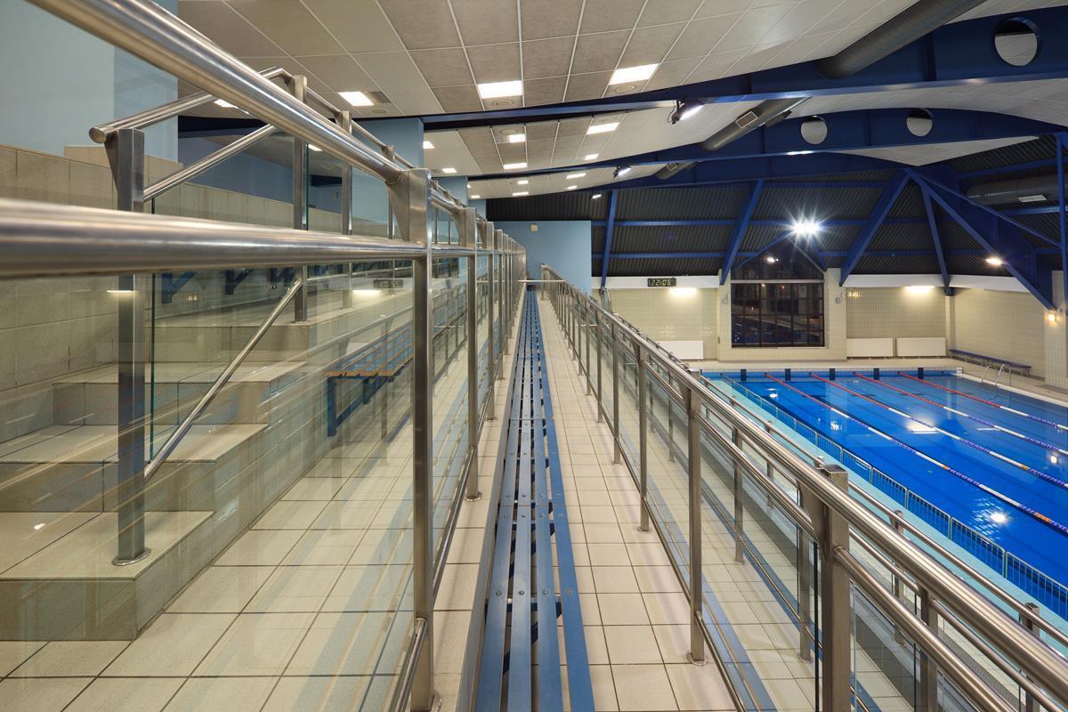 Pływalnia posiada basen z 6 torami o długości 25 metrów. Głębokość niecki basenowej mieści się w przedziale od 1.29m. do 1.79m. Tor nr 6 posiada wypłycenie na całej długości 0,90m. Woda w basenie jest chlorowana, a jej temperatura wynosi 27°C. Przy basenie znajdują się trybuny, które mogą pomieścić 300 osób.