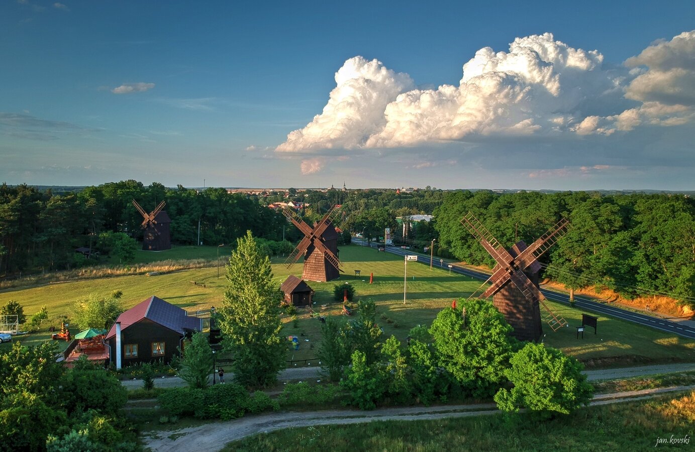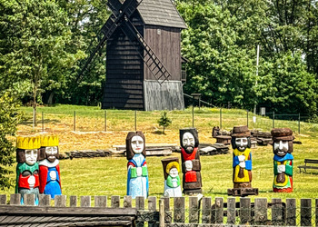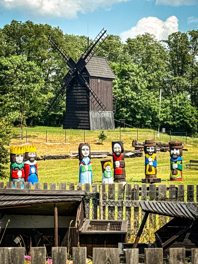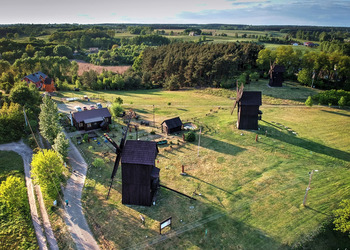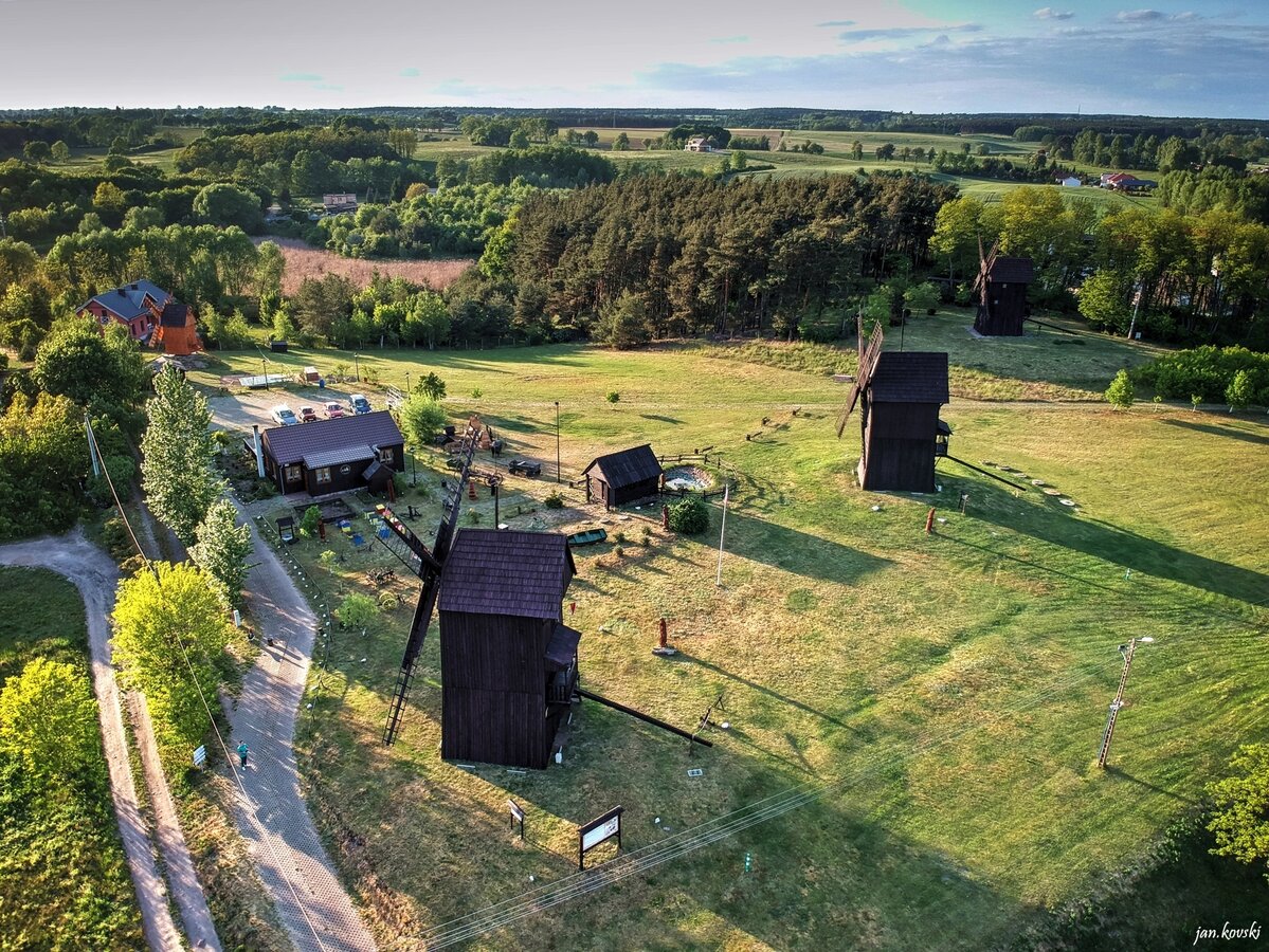- Trzy zabytkowe wiatraki typu koźlak (imiona: Franciszek – od 1761 r., Józef‑Adam, Leon) – jedyny w Polsce kompleks tak zachowanych drewnianych wiatraków, umożliwiających wgląd do wnętrza dwóch z nich.