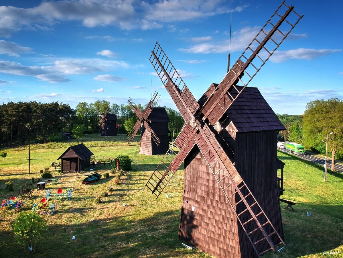 - Wiatrak „Jan 2” waży 26 ton, a zabytkowe – 80–90 ton i 12 m wysokości; odbudowany po wichurze w 2022 r. z solidnym fundamentem.
