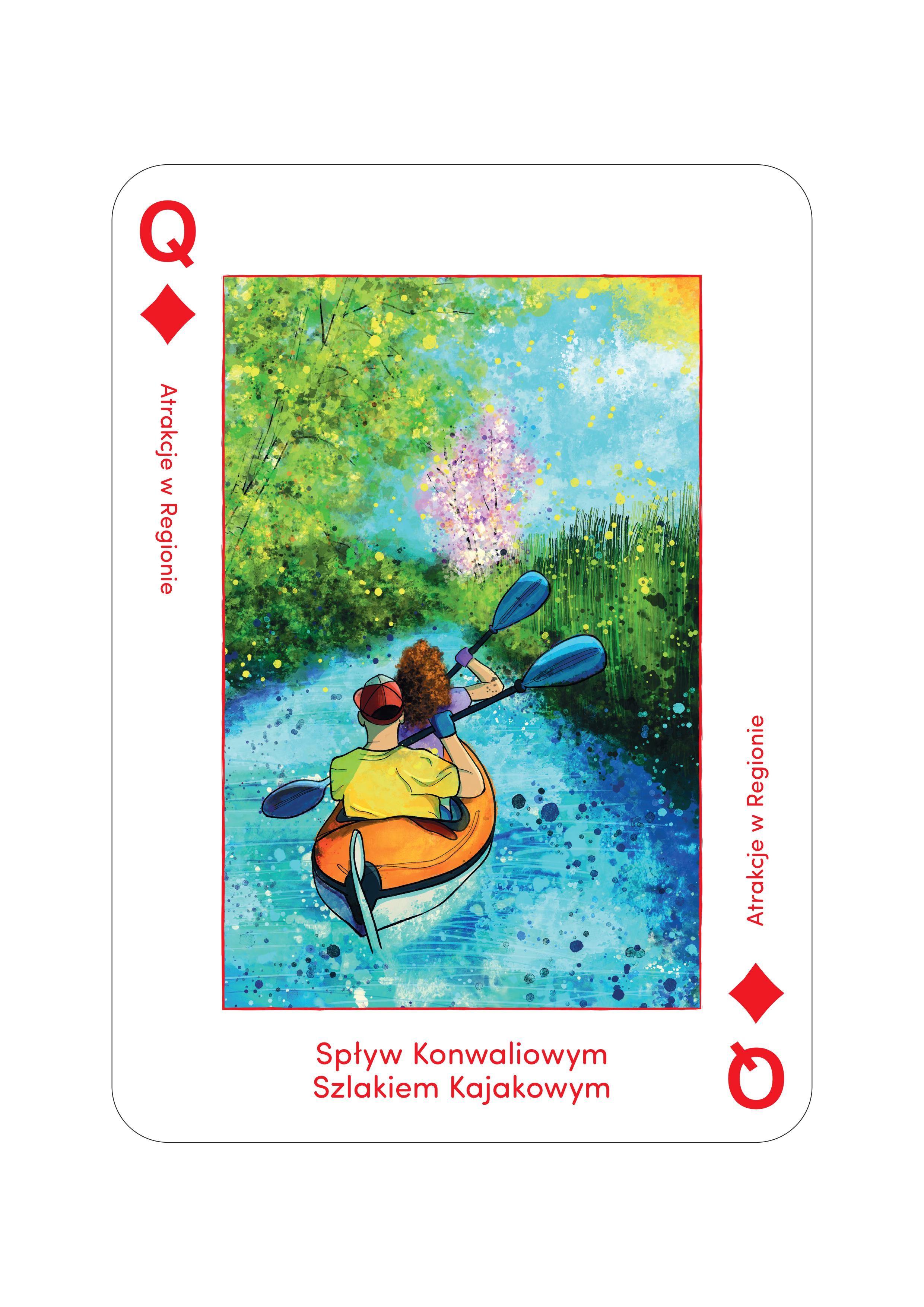 Każda karta to osobna opowieść – zilustrowana w stylu komiksowo-rzemieślniczym, atrakcyjna wizualnie i łatwa do zapamiętania. Na odwrocie umieszczony zostanie kod QR, który po zeskanowaniu przeniesie odbiorcę na stronę internetową stowarzyszenia z dodatkowymi informacjami o danej atrakcji, zdjęciami, opisem dojazdu oraz propozycjami zwiedzania.