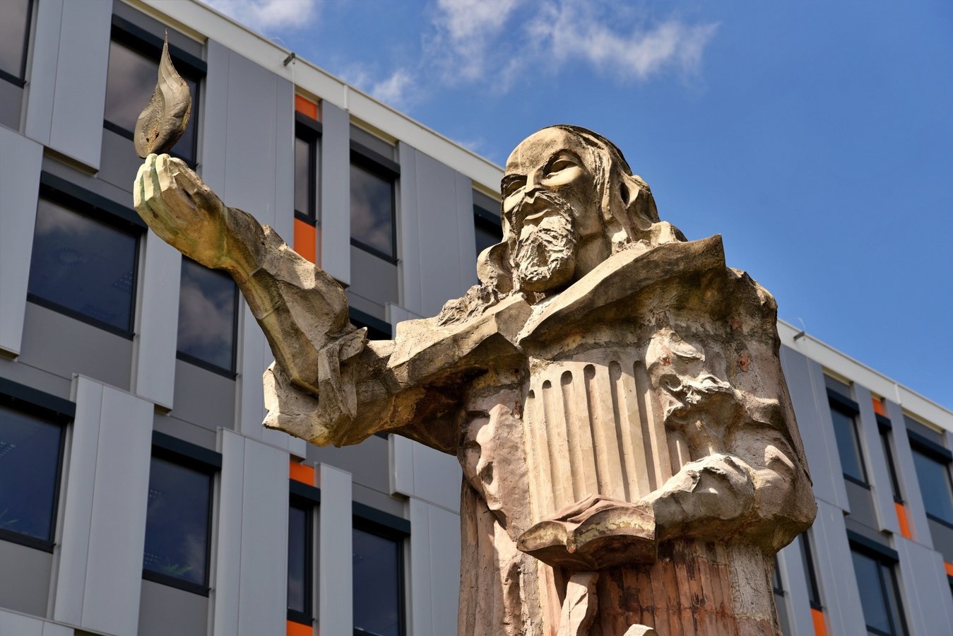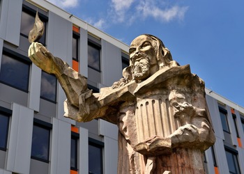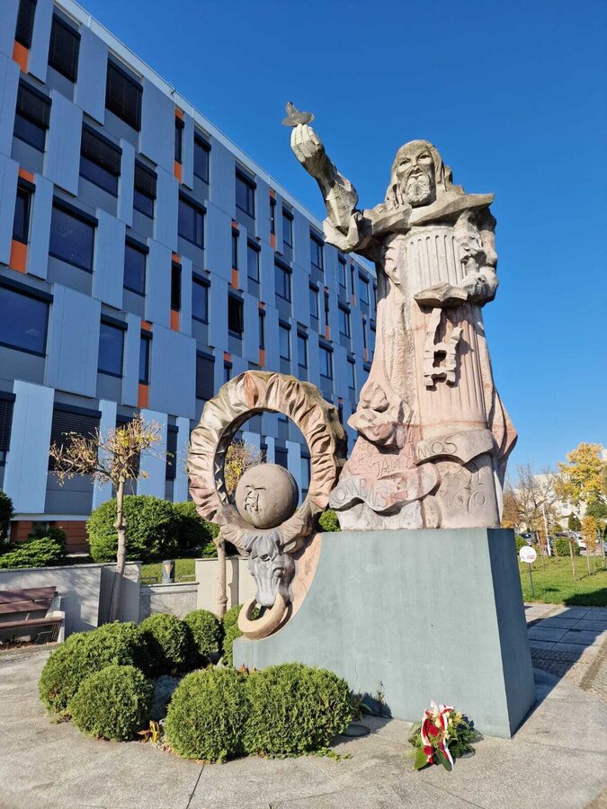 Patronem leszczyńskiej uczelni jest czeski pedagog, teolog i filozof Jan Amos Komeński (1592-1670). Jego monumentalny pomnik, autorstwa Ireneusza Daczki, wzniesiony został przy budynku głównym w 2003 r. Nieopodal znajduje się odlany w brązie osiołek, postać z przypowiastki filozoficznej Komeńskiego.