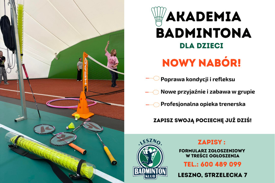 Badminton Klub Leszno z radością ogłasza start nowego naboru do swojej Akademii! Zapraszamy dzieci, które chcą dołączyć do naszych grup treningowych i pod okiem profesjonalistów rozwijać swoją pasję do badmintona.