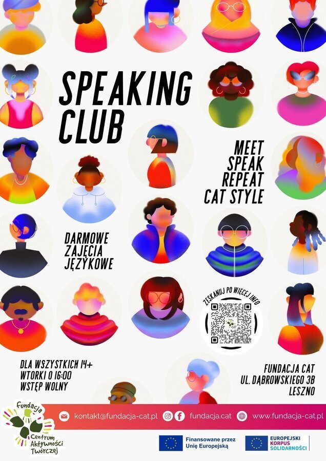 Aktualności Speaking Clubu znajdziecie na Facebooku Fundacji https://www.facebook.com/fundacja.cat/ oraz w specjalnym wydarzeniu https://fb.me/e/aM3cnXcSS