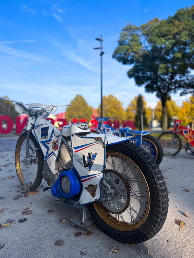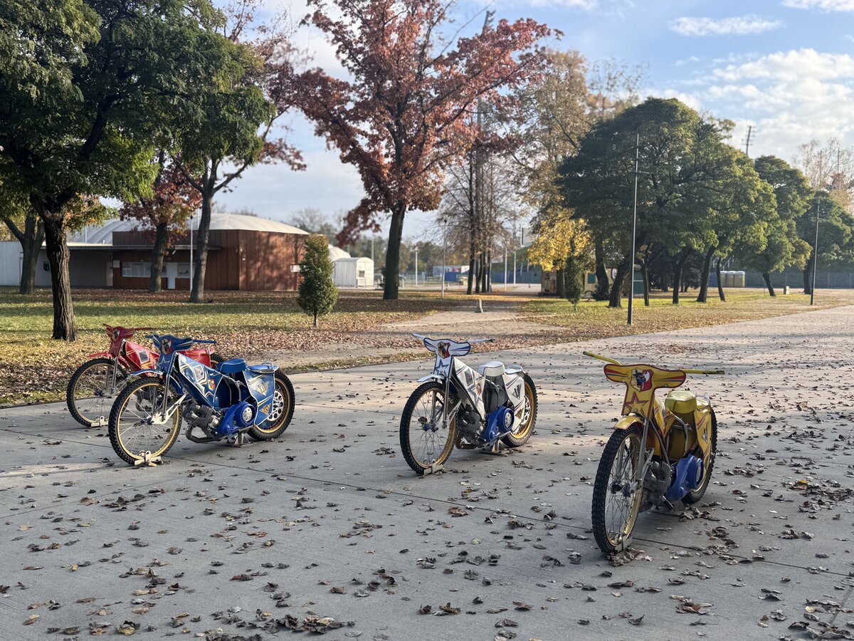 Nieodłączną częścią alei są znajdujące się na niej cztery motocykle żużlowe, które podobnie jak kaski zawodników, są w czterech kolorach: czerwonym, niebieskim, białym i żółtym.