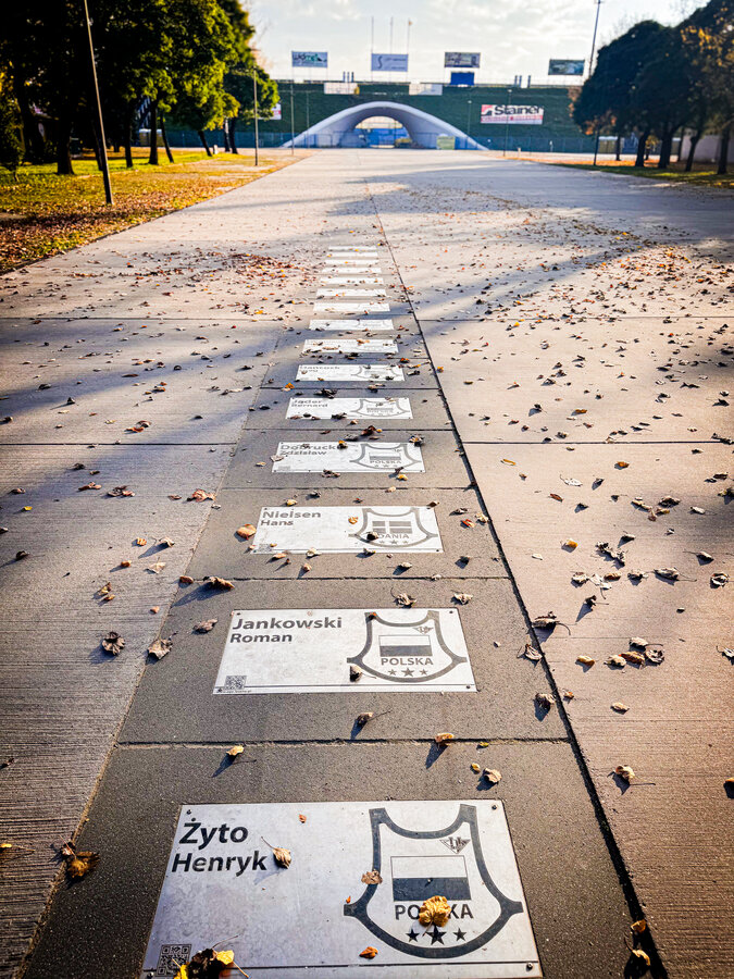 Od strony 17-go Stycznia w kierunku stadionu znajduje się Aleja Gwiazd Żużla.